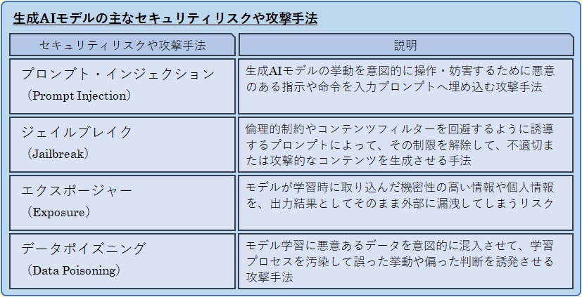 インジェクション(Injection)とは、一般的には注射という意味ですが、IT分野では、外部からの入力やデータの中に悪意ある命令・コードを埋め込むことで、対象システムやモデルの制御を乗っ取り、本来意図しない動作や権限外の処理を実行させる攻撃手法のことをいいます。入力フォームに不正なSQL文を混入して、データベースを不正に操作するSQLインジェクションは、クラウドプラクティショナー試験でも出題範囲のひとつとなっている有名な攻撃手法です。