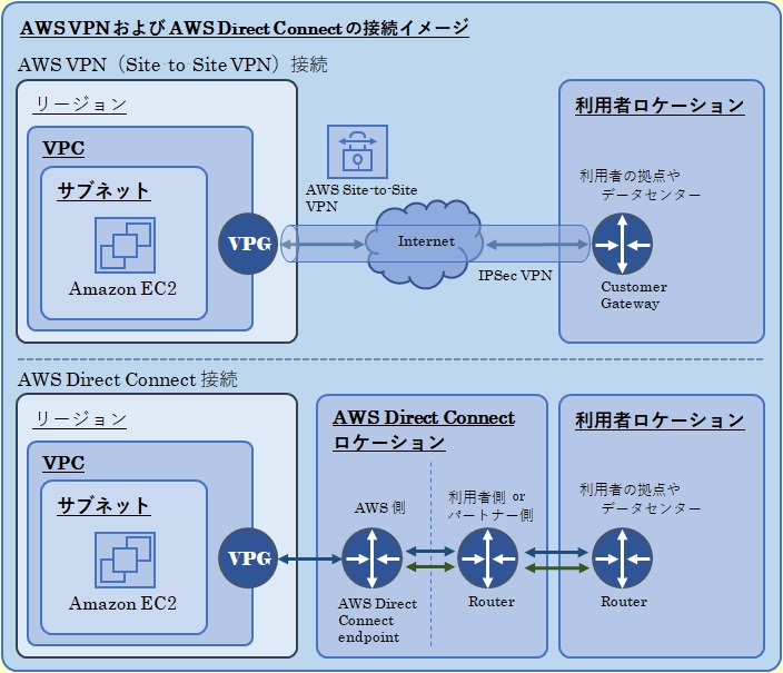 その他の選択肢は、AWS環境とオンプレミスのオフィス・ネットワークとの間で暗号化された通信を確立するAWSサービスではありません。AWS Direct Connect は、AWS 環境と自社環境(拠点やデータセンターなど)との間で専用線によるプライベート接続を実現するサービスです。AWS Direct Connect は、AWS環境とオンプレミス環境のオフィス・ネットワークをプライベート接続することができるもうひとつのサービスです。しかしながら、AWS Direct Connect では、専用線により物理的に安全な経路を確保することができるため、標準的には通信の暗号化はされません。費用面を考慮しても、本問題の要件に対しては、最適な選択肢ではありません。